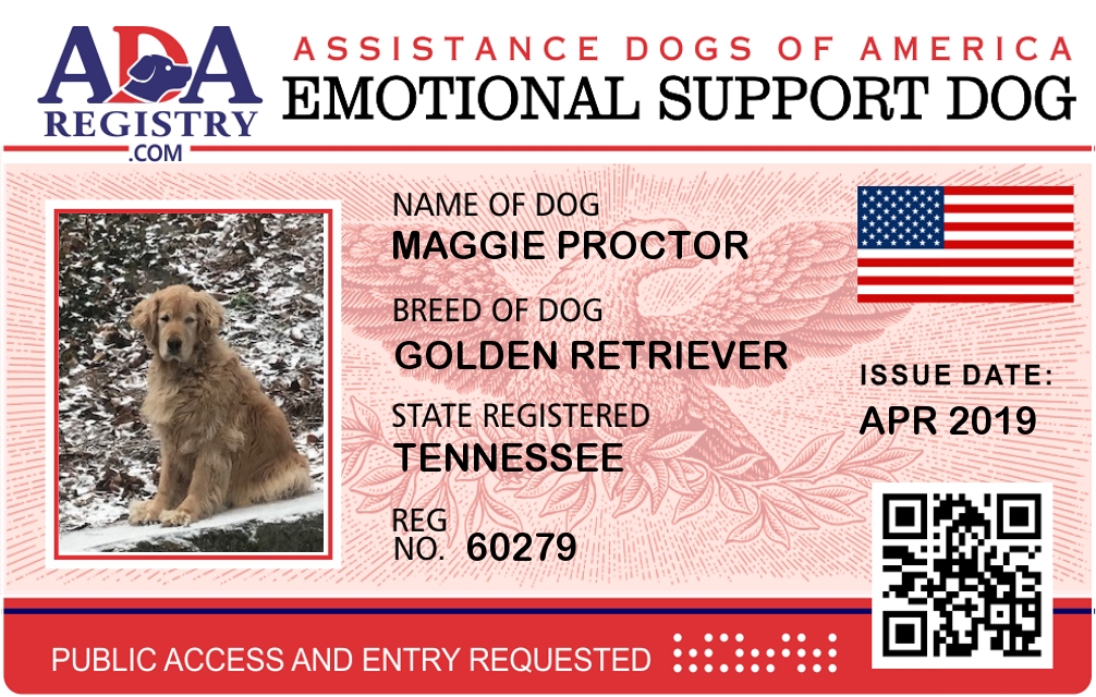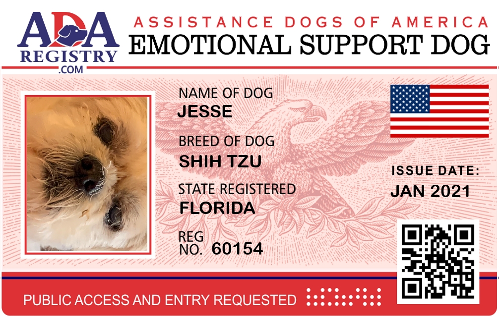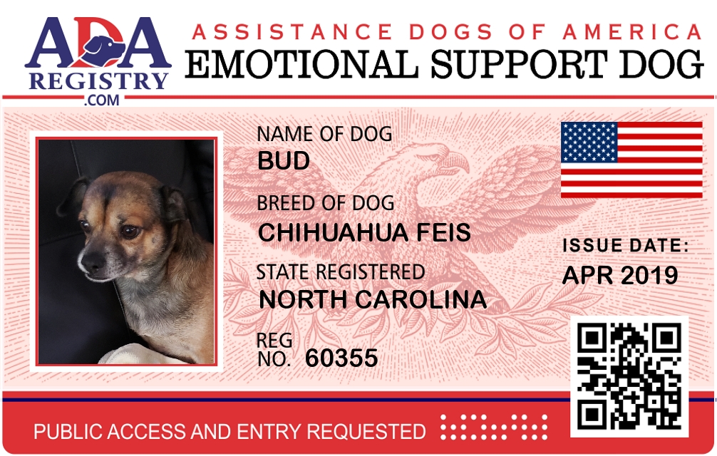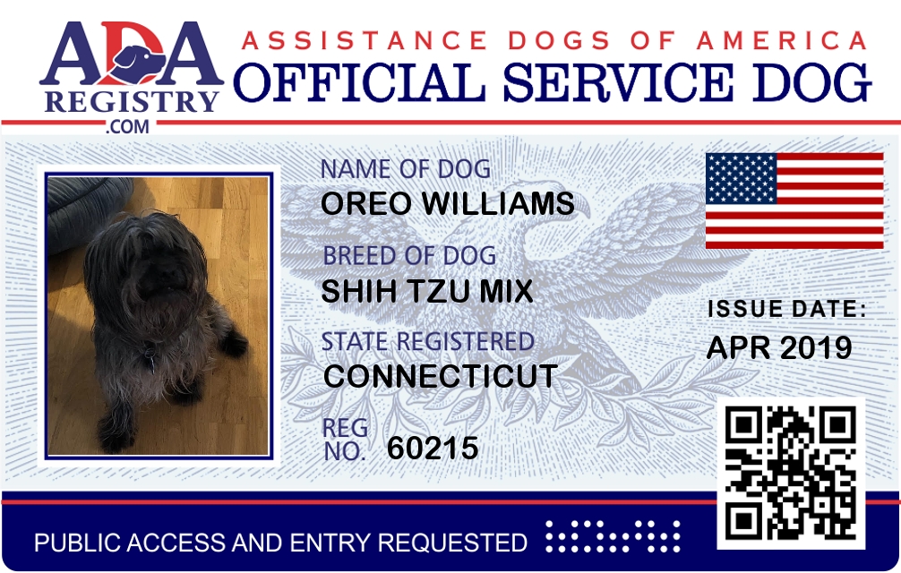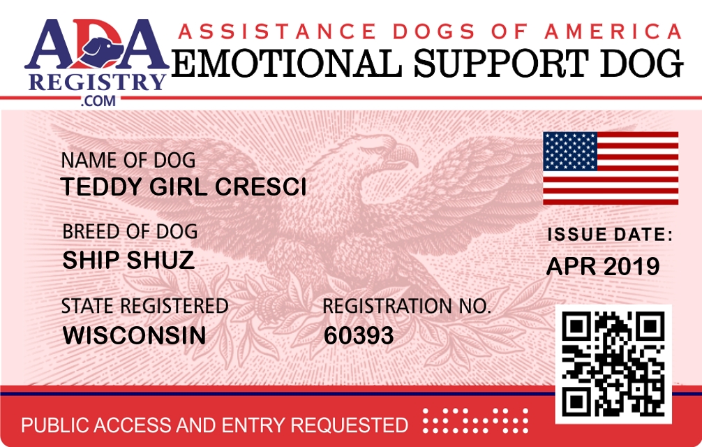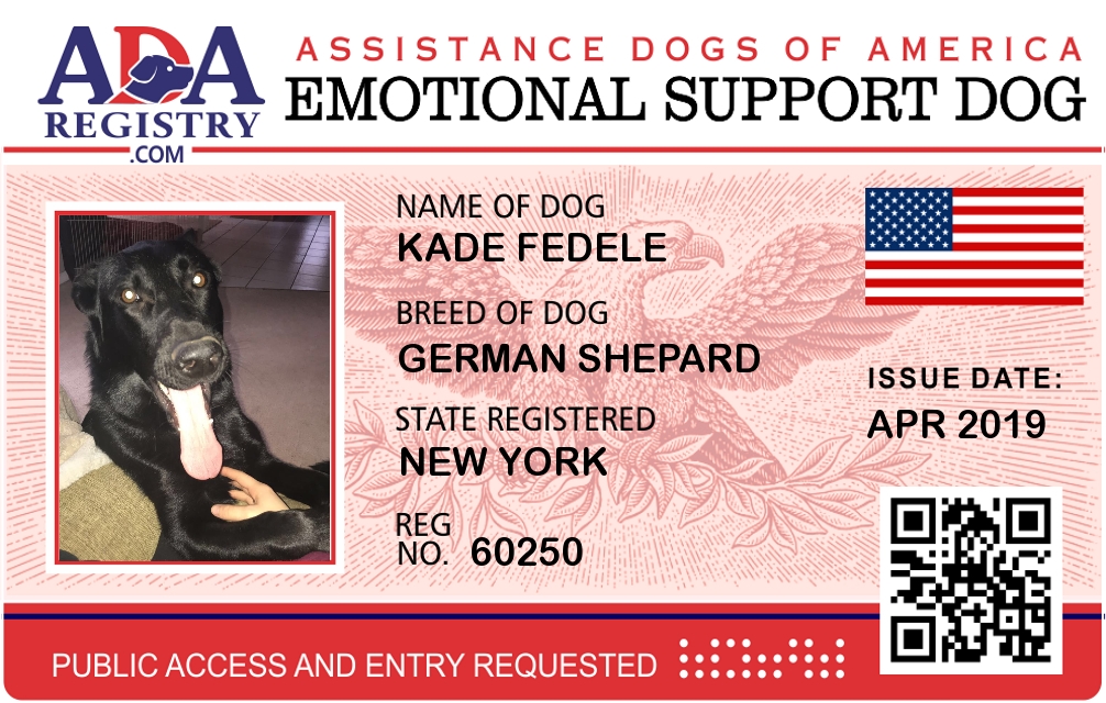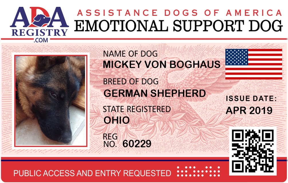 Emotional Support Dog Registration for Mickey Von Boghaus