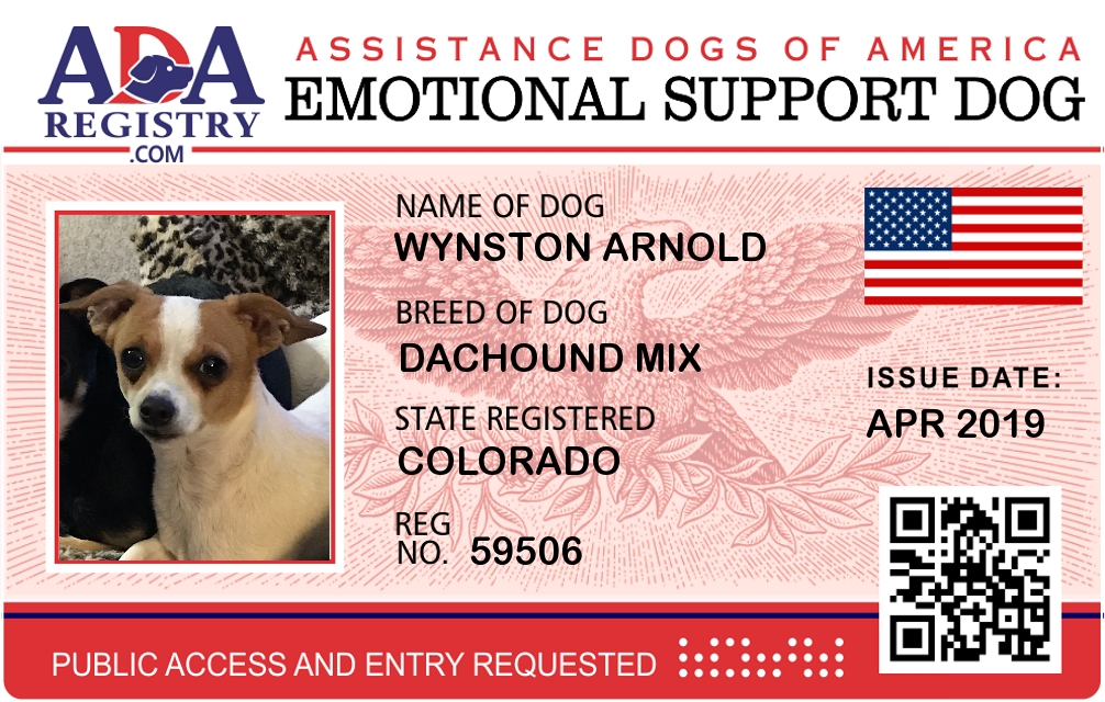 Emotional Support Dog Registration for Wynston Arnold