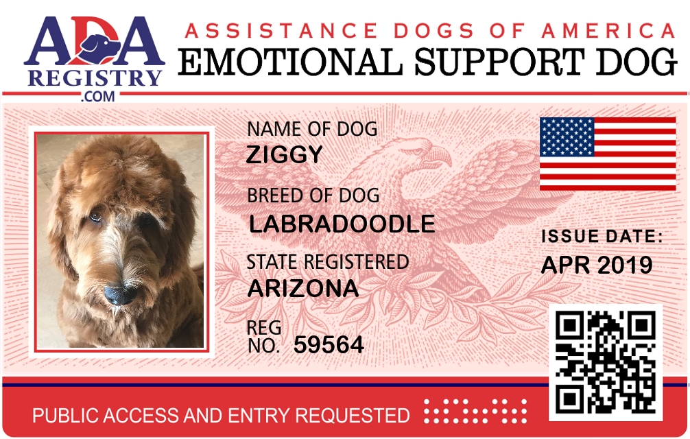 Emotional Support Dog Registration for Ziggy