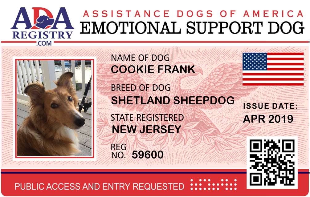 Emotional Support Dog Registration for Cookie Frank
