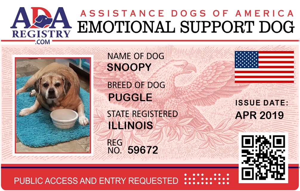 Emotional Support Dog Registration for Snoopy