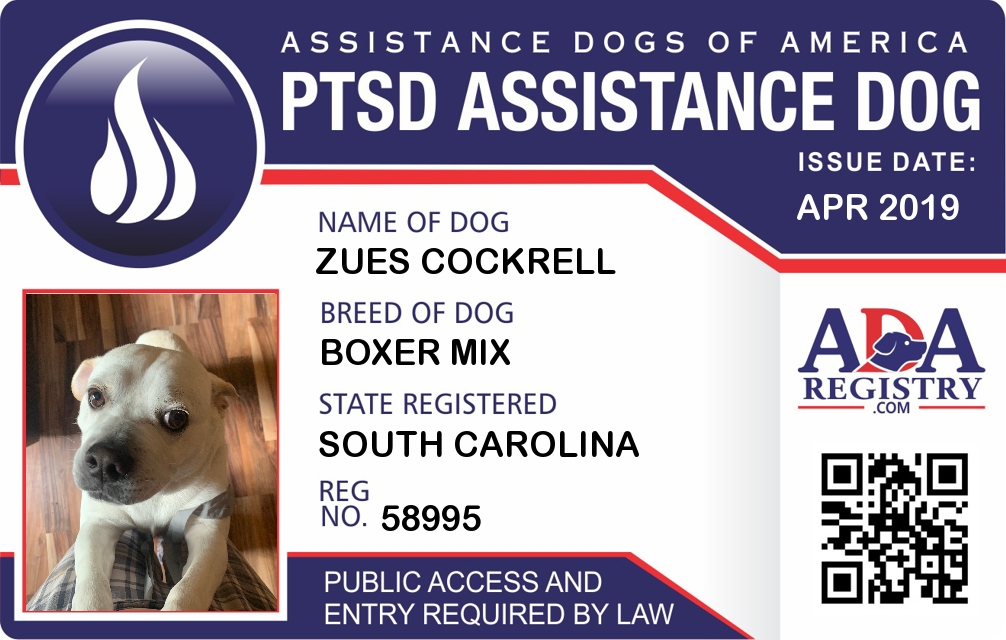 PTSD Assistance Dog Registration for Zues Cockrell