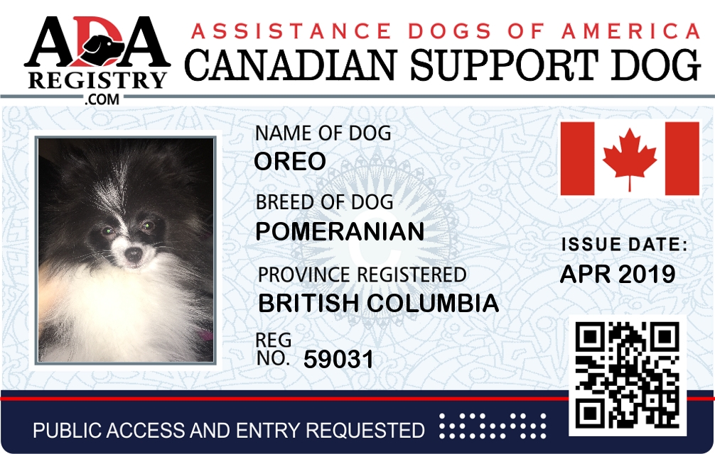 Emotional Support Dog Registration for Oreo