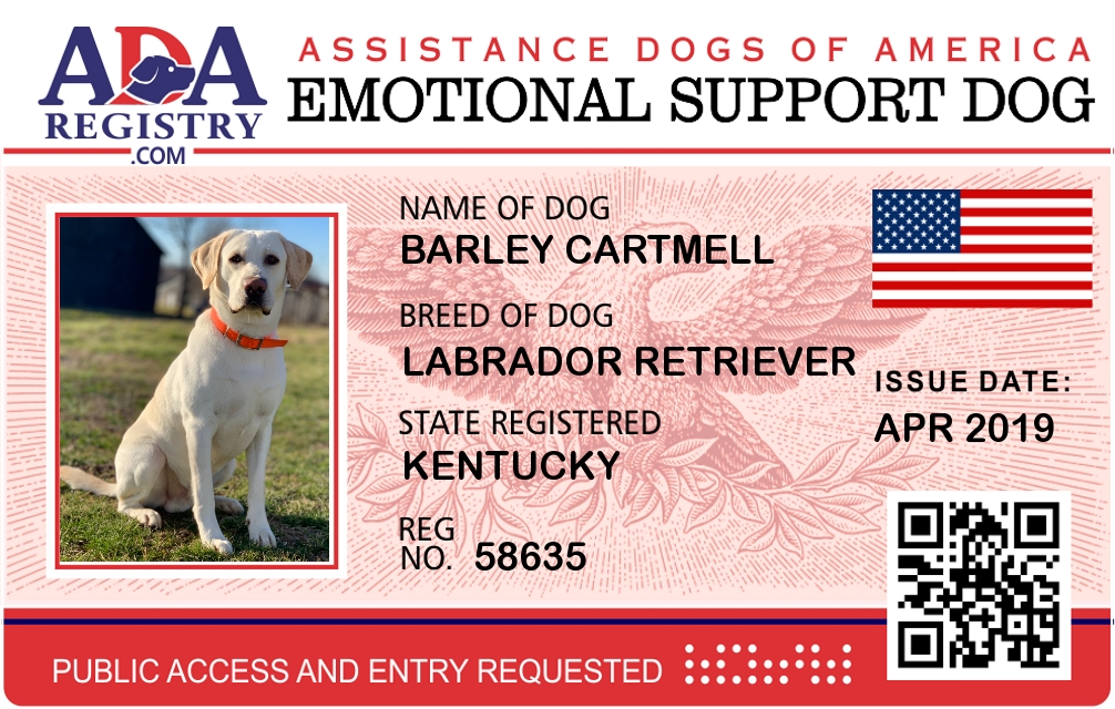 Emotional Support Dog Registration for Barley Cartmell