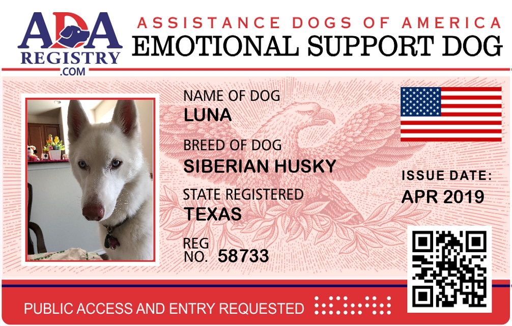 Emotional Support Dog Registration for Luna