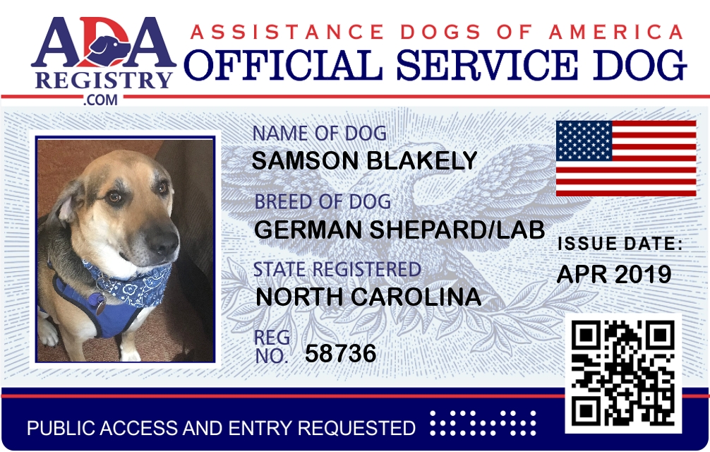 Service Dog Registration for Samson Blakely