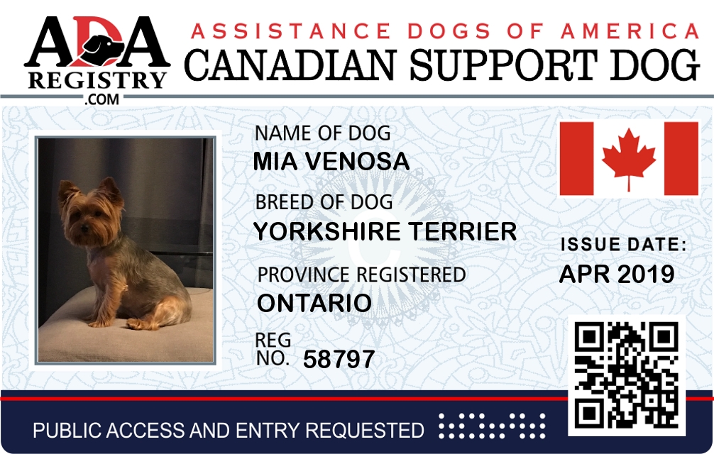 Emotional Support Dog Registration for Mia Venosa