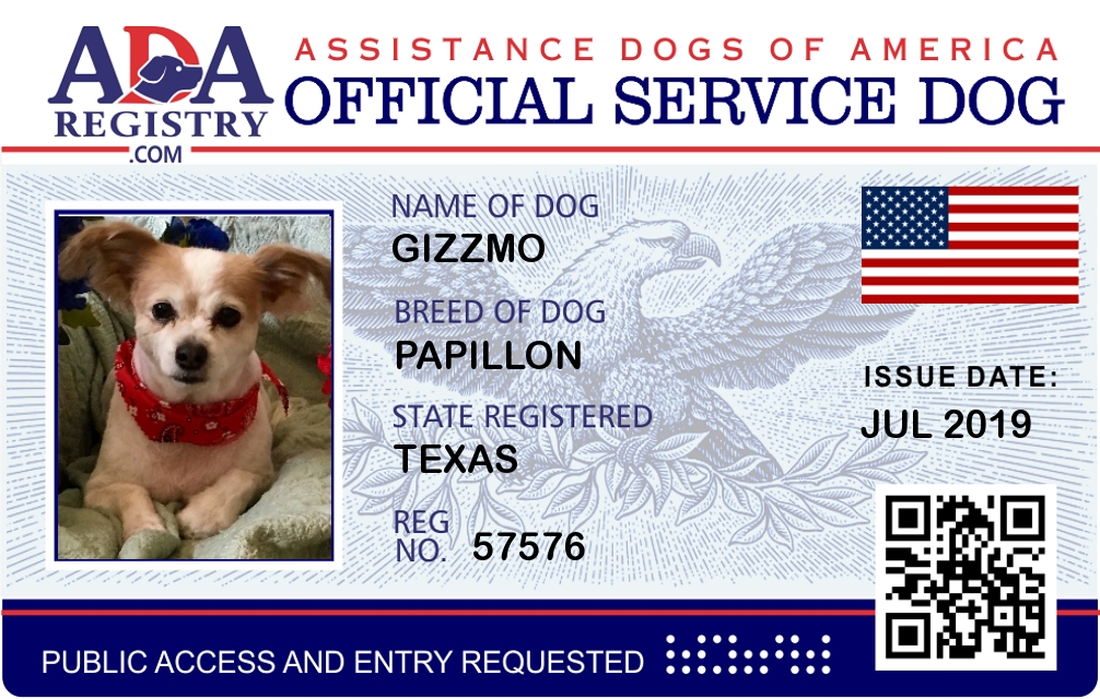 Medical Assistance Dog Registration for Gizzmo