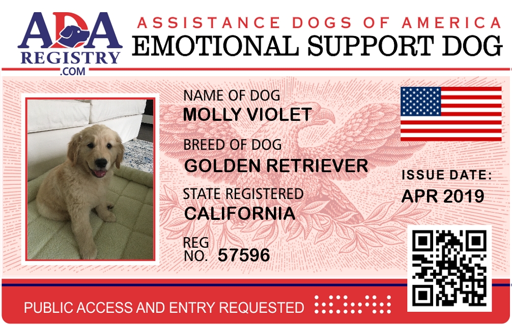 Emotional Support Dog Registration for Molly Violet