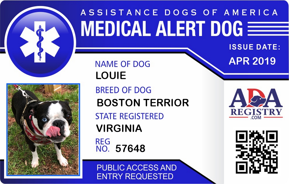 Medical Alert Dog Registration for Louie