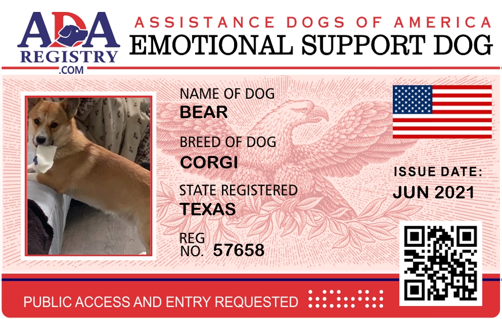 Emotional Support Dog Registration for Bear