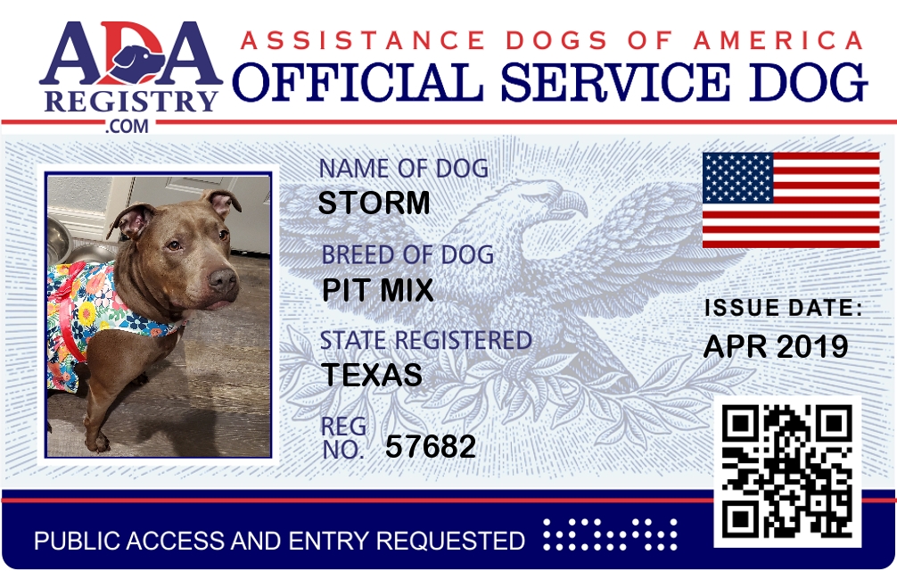 Service Dog Registration for storm