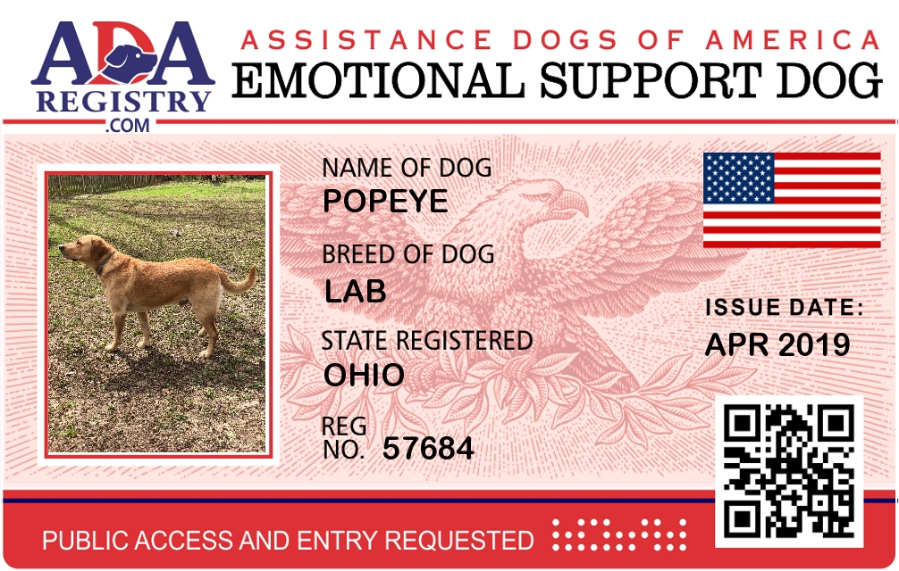 Emotional Support Dog Registration for Popeye