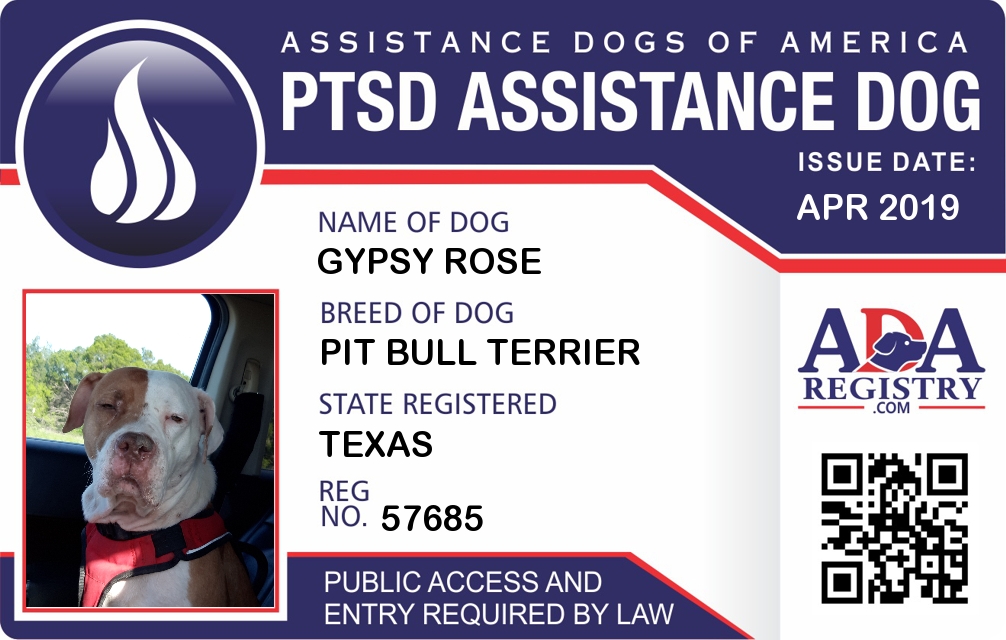 PTSD Assistance Dog Registration for Gypsy Rose