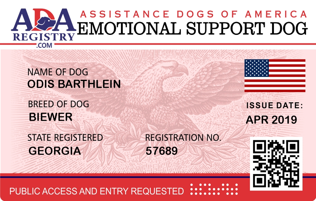 Emotional Support Dog Registration for Odis Barthlein