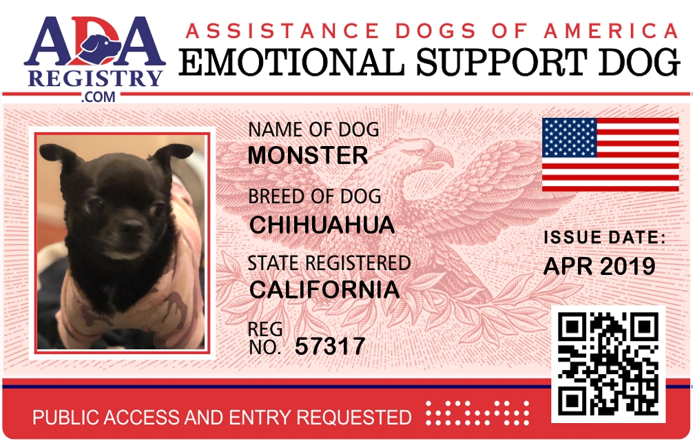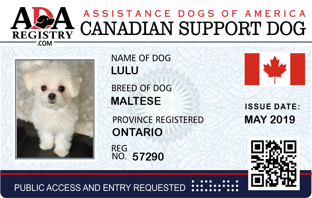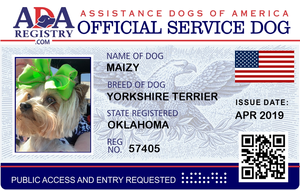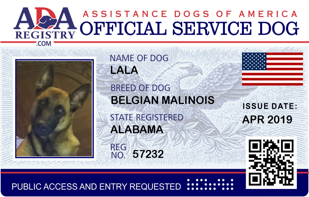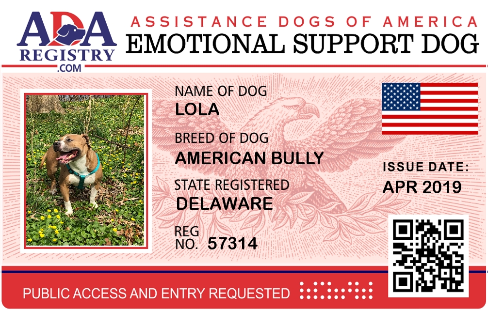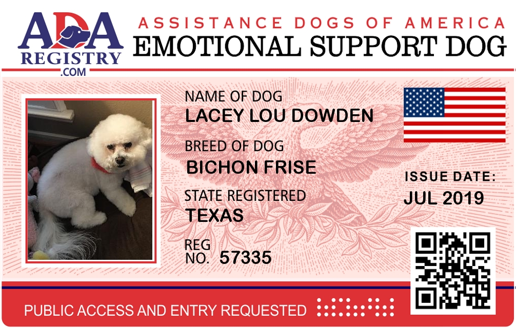 Emotional Support Dog Registration for Lacey Lou Dowden