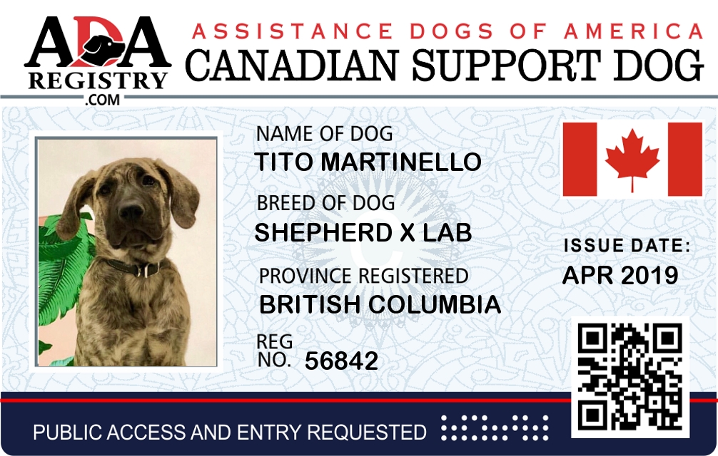 Emotional Support Dog Registration for Tito Martinello