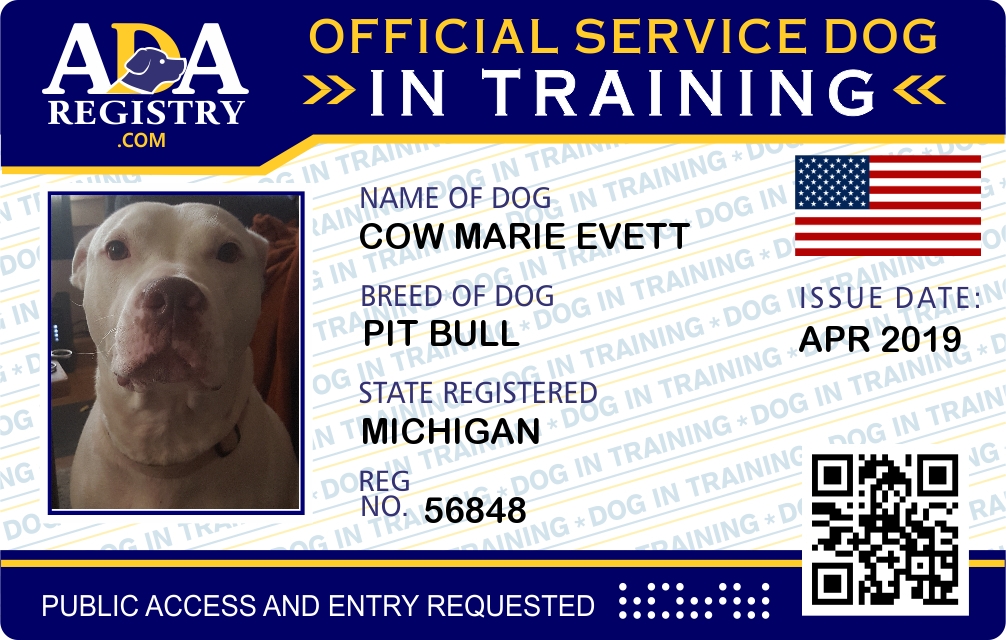 Service Dog In Training Registration for Cow Marie Evett