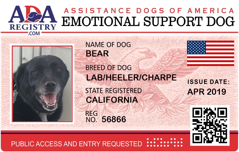 Emotional Support Dog Registration for Bear