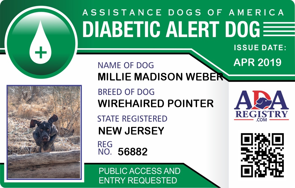 Diabetic Alert Dog Registration for Millie Madison Weber