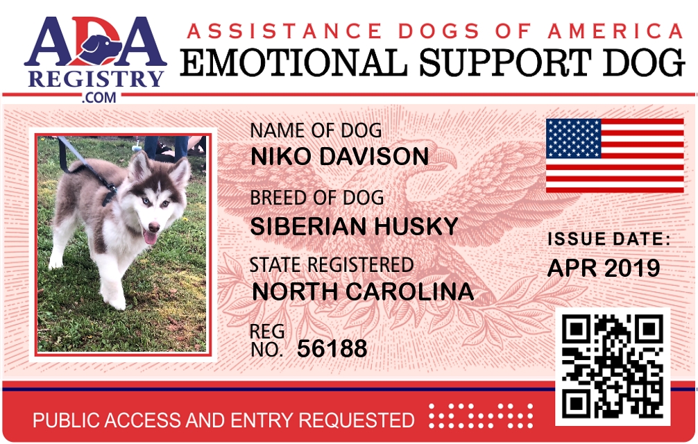 Emotional Support Dog Registration for Niko Davison