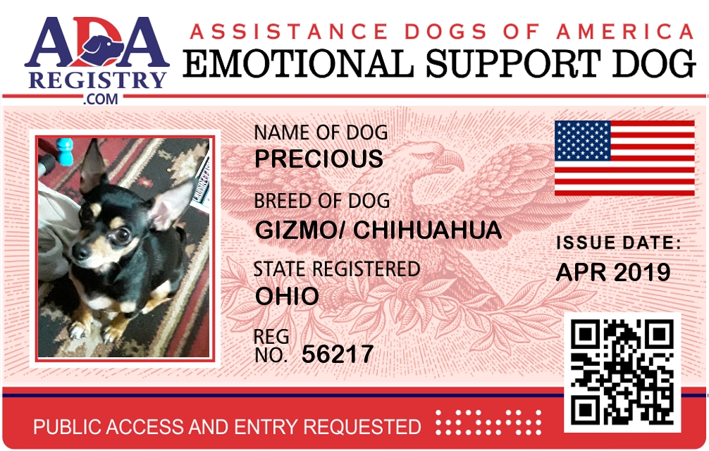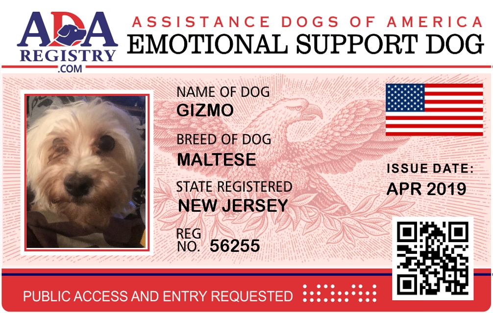 Emotional Support Dog Registration for Gizmo