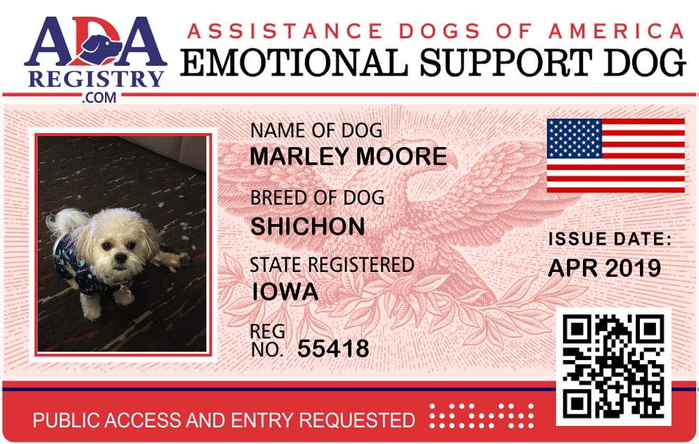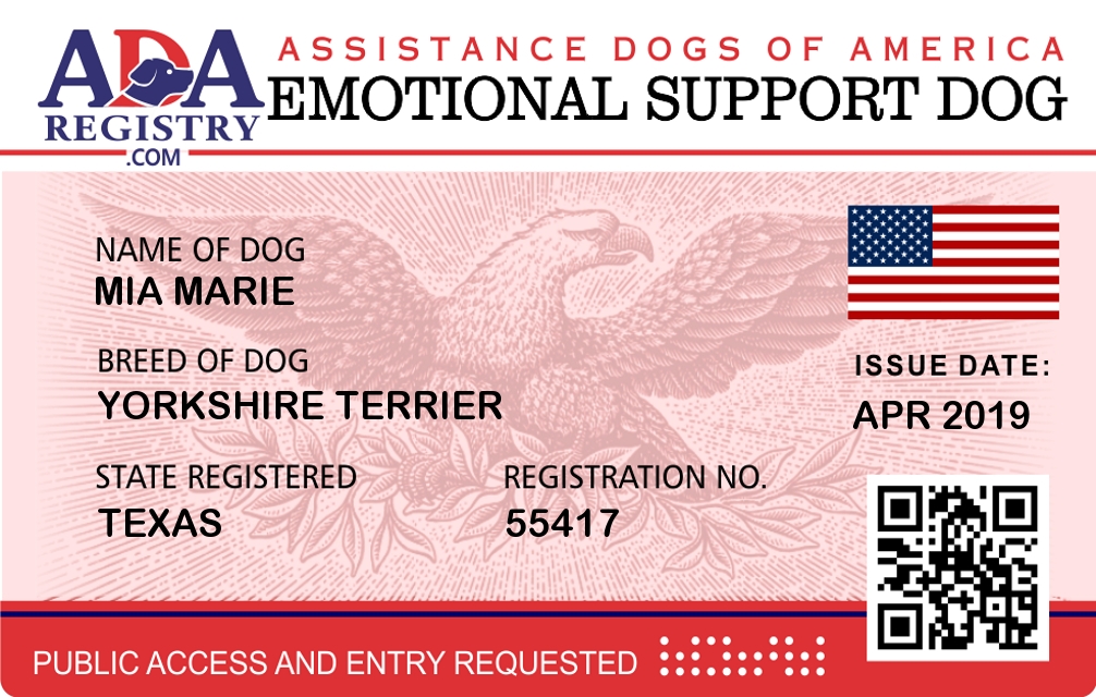 Emotional Support Dog Registration for Mia Marie