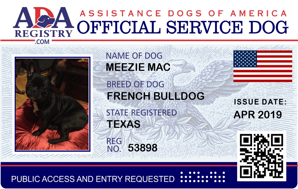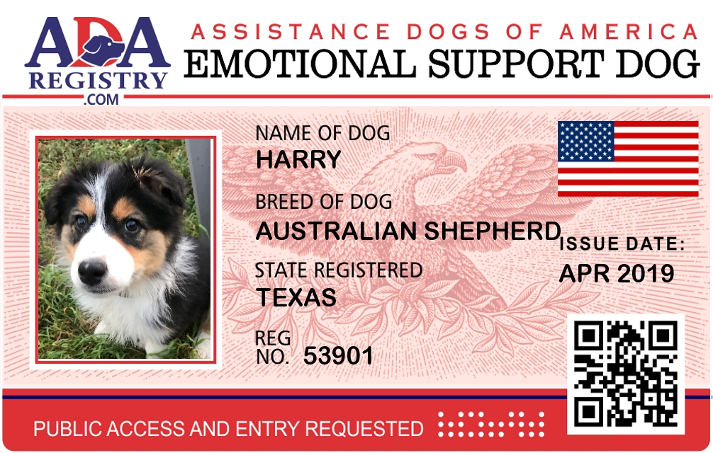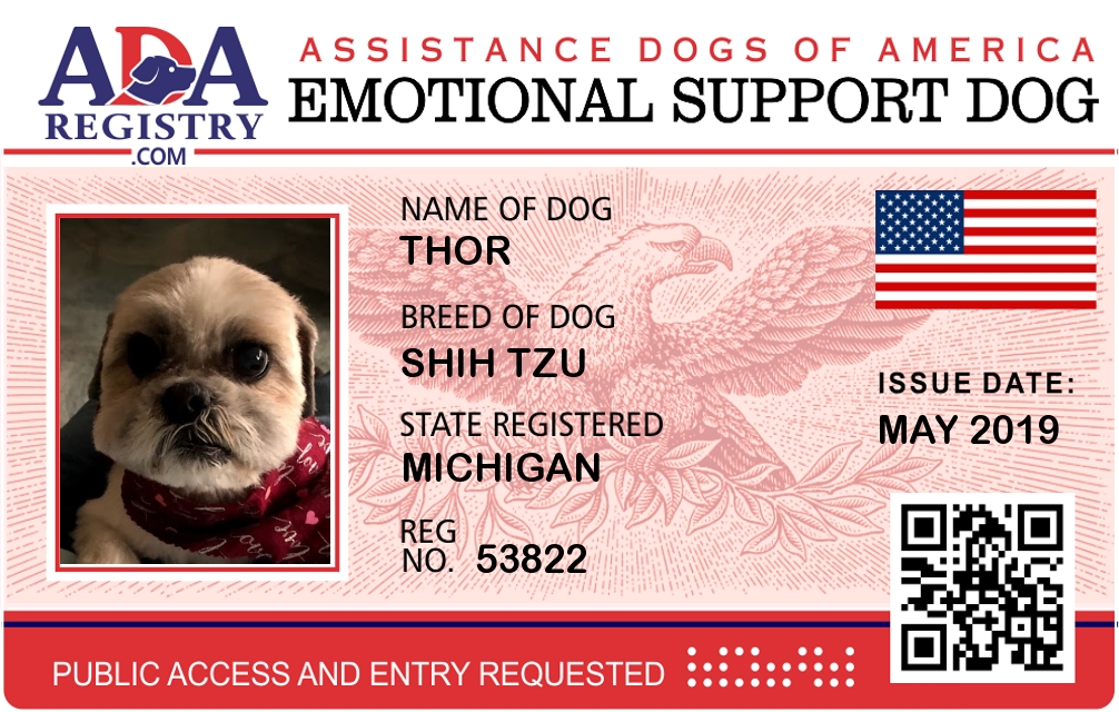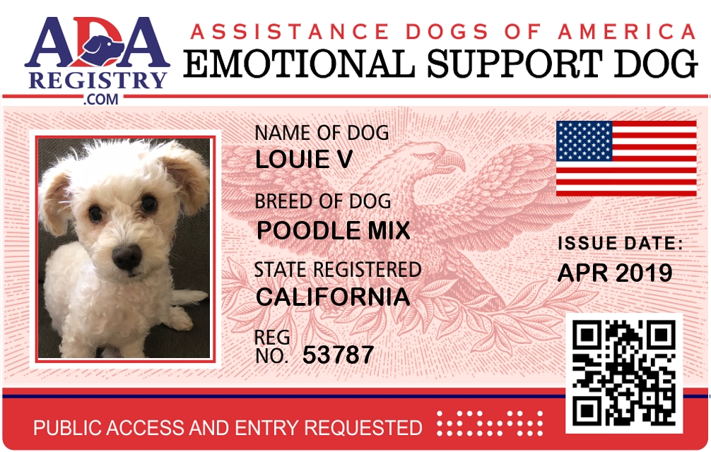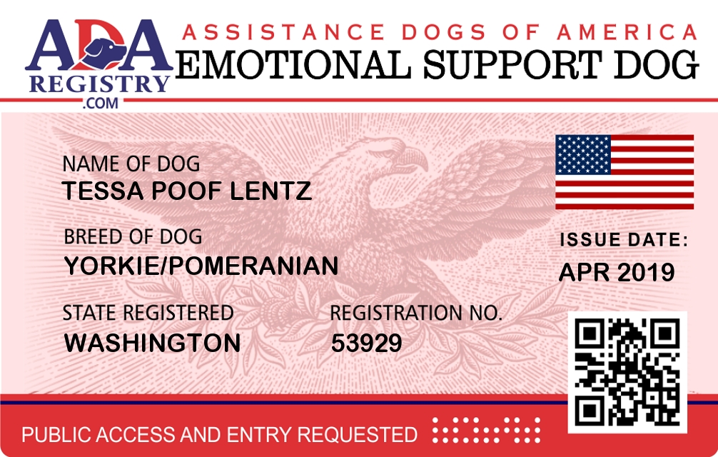 Emotional Support Dog Registration for Tessa Poof Lentz