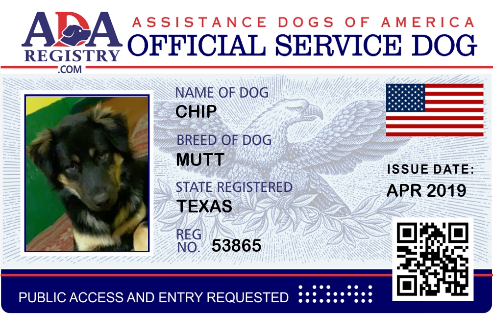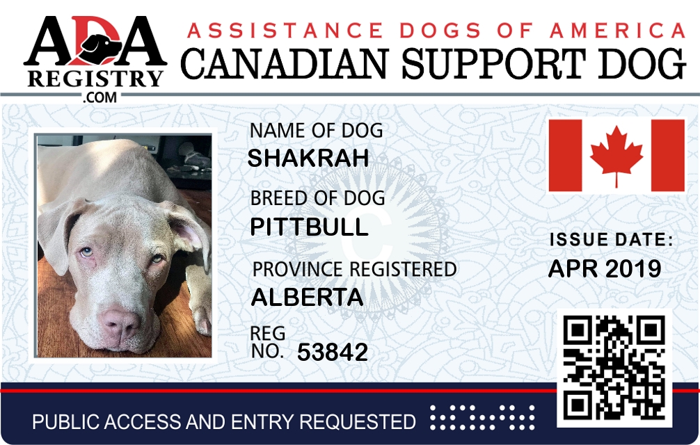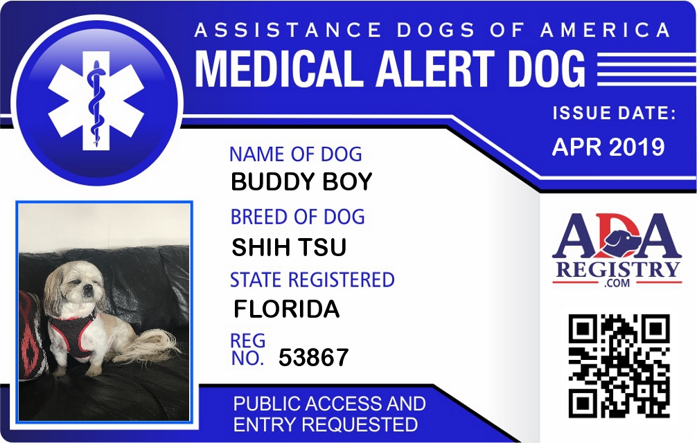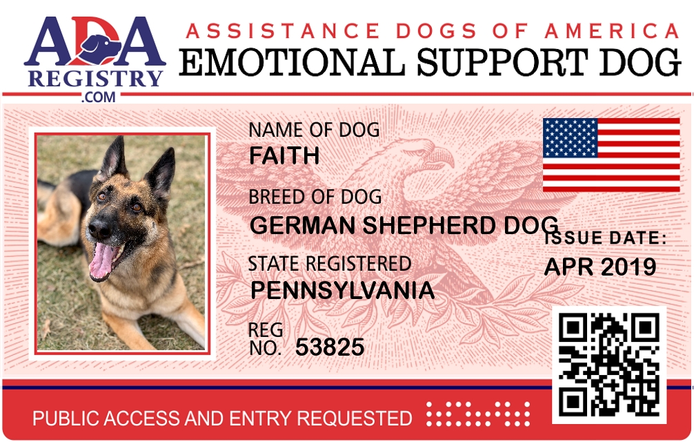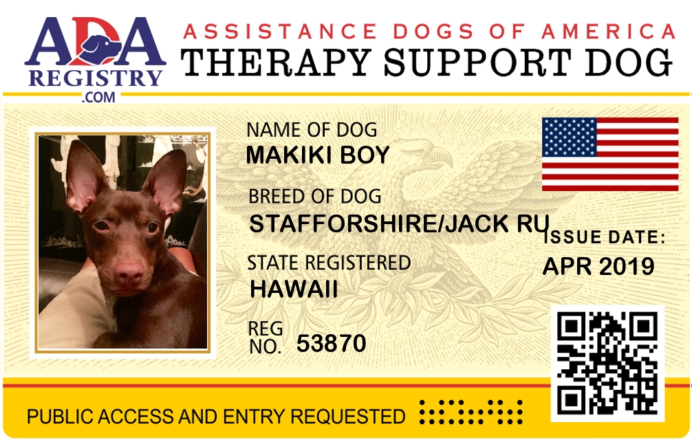 Emotional Support Dog Registration for Tessa Poof Lentz