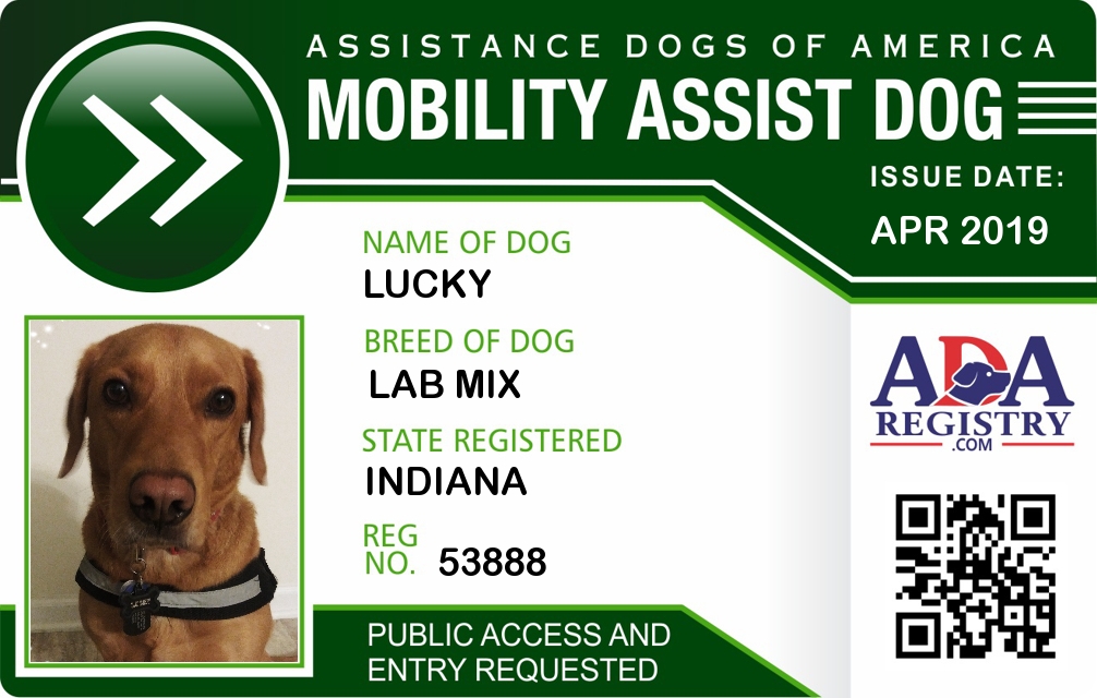 Registration Type: Brace / Mobility Assistance Dog Registration