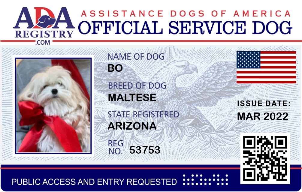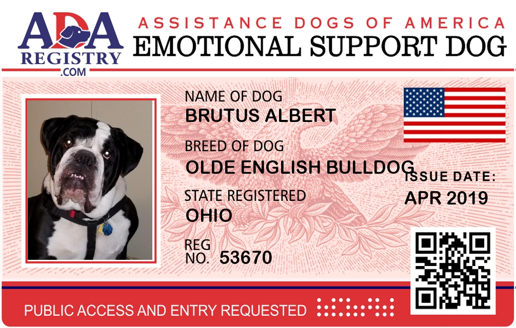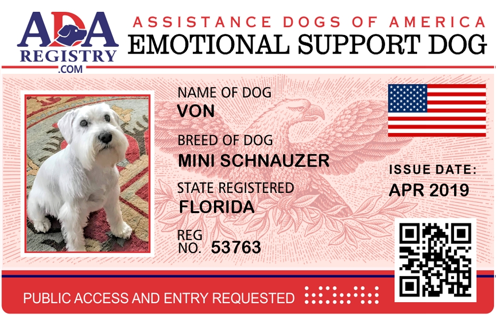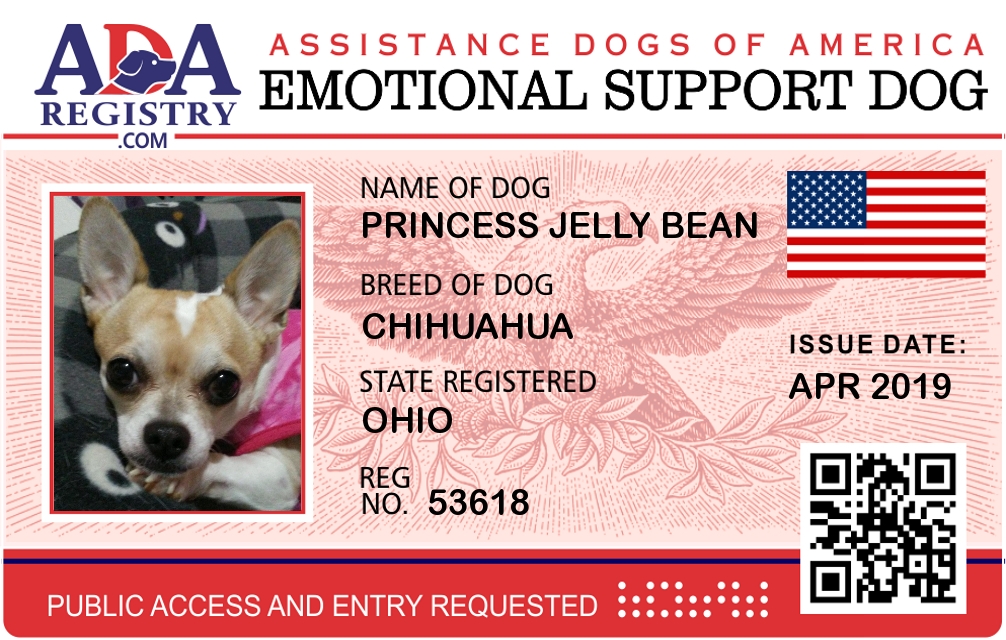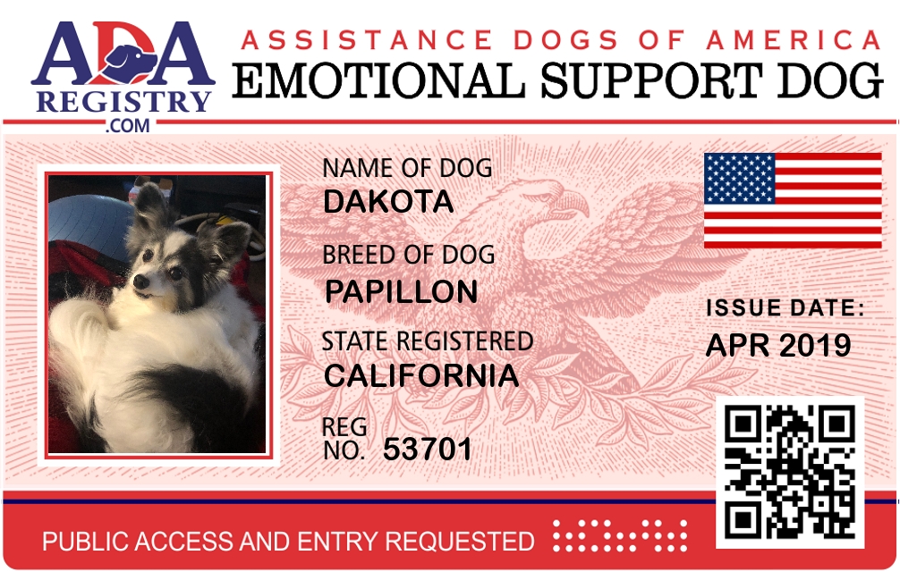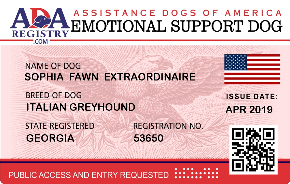 Emotional Support Dog Registration for Sophia Fawn Extraordinaire