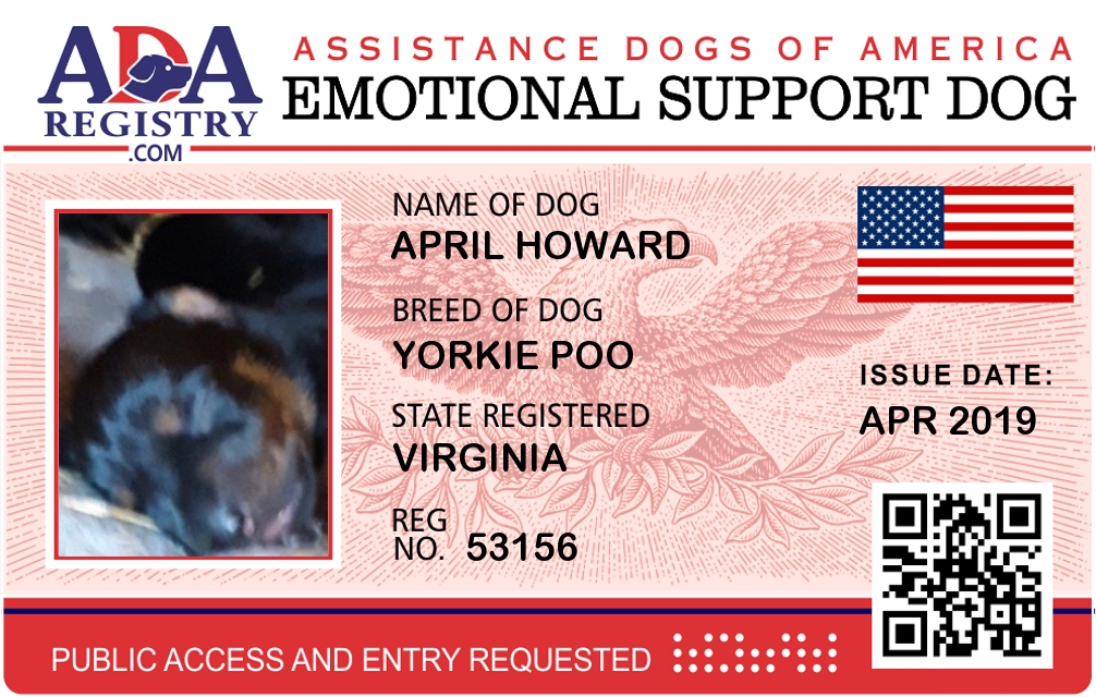 Emotional Support Dog Registration for April Howard