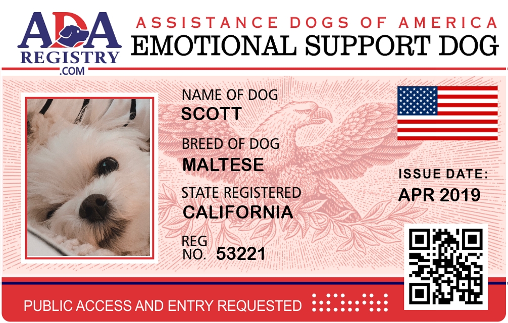 Emotional Support Dog Registration for Scott