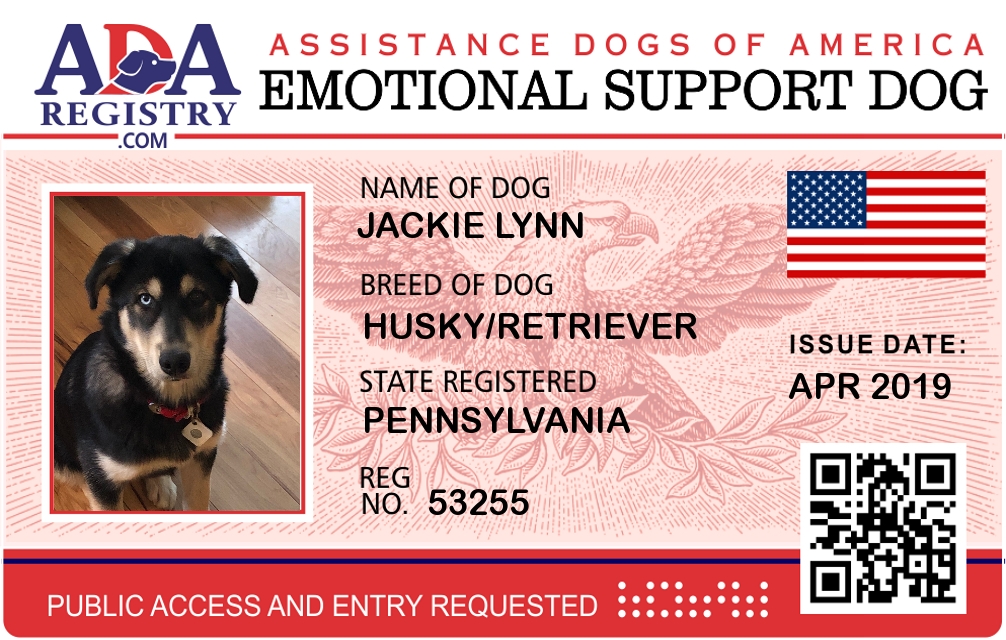 Emotional Support Dog Registration for Jackie Lynn