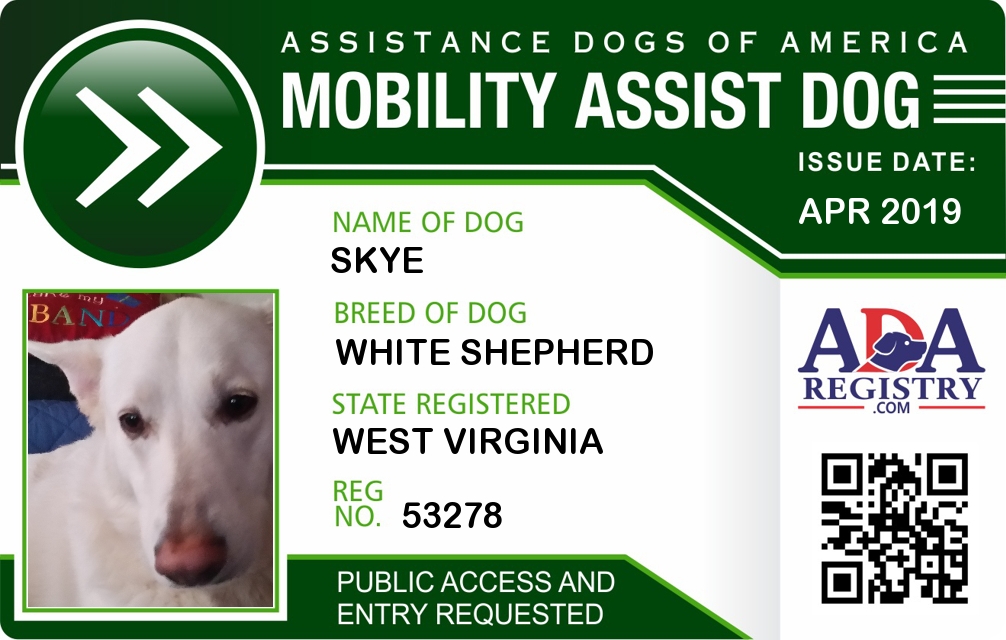 Brace / Mobility Assistance Dog Registration for Skye
