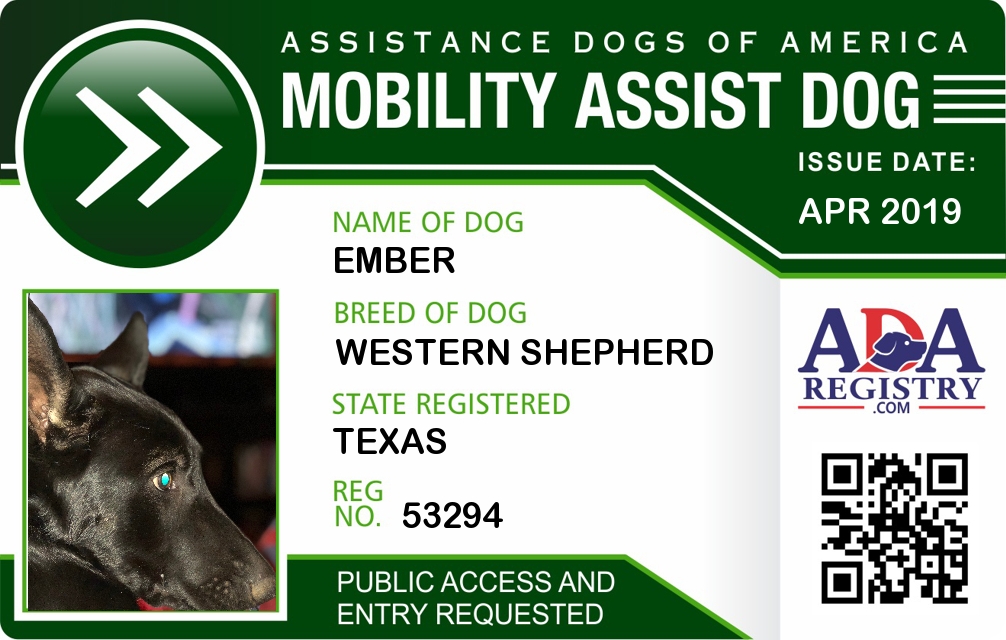 Brace / Mobility Assistance Dog Registration for Ember
