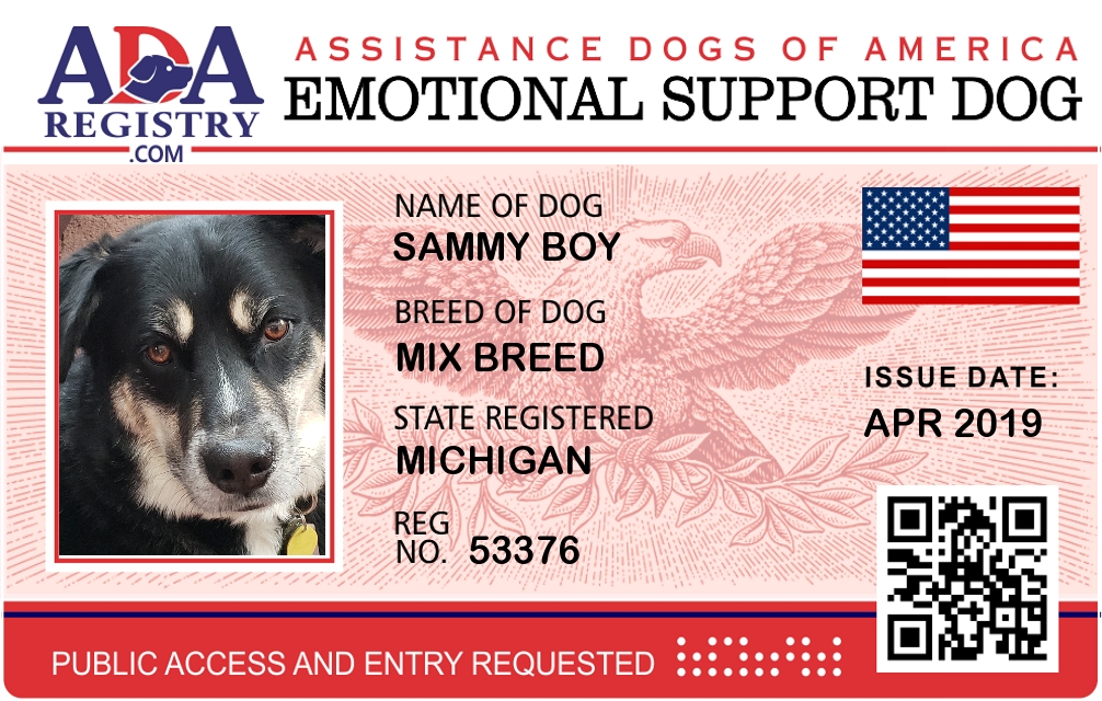 Service Dog Registration for SAMMY BOY