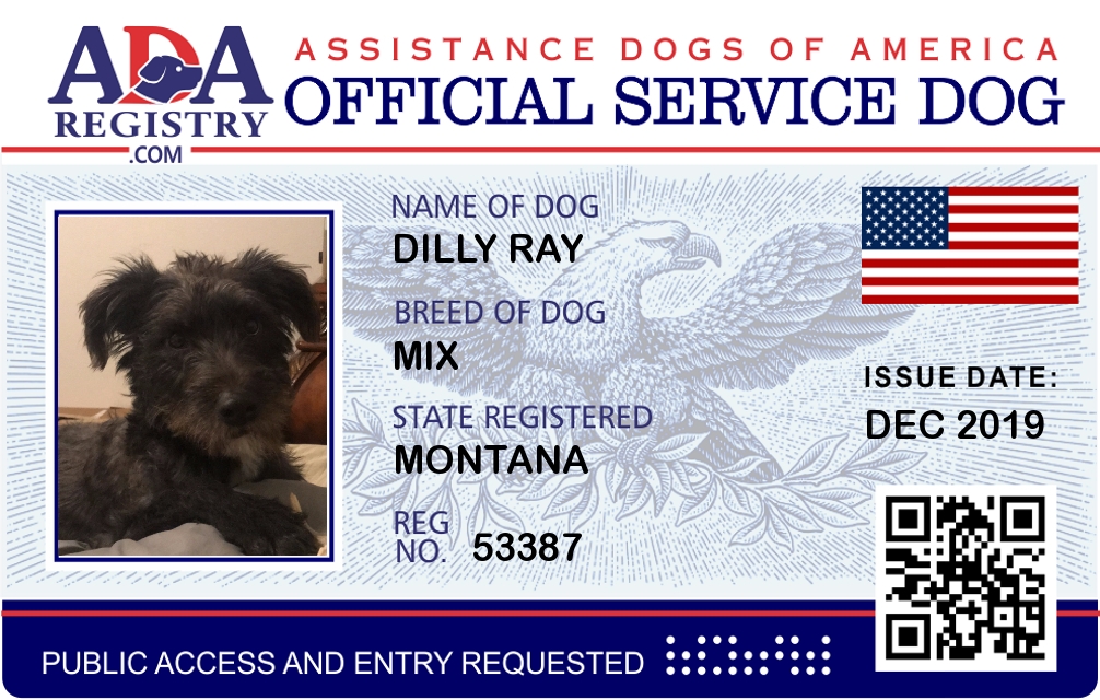 Service Dog Registration for Dilly Ray