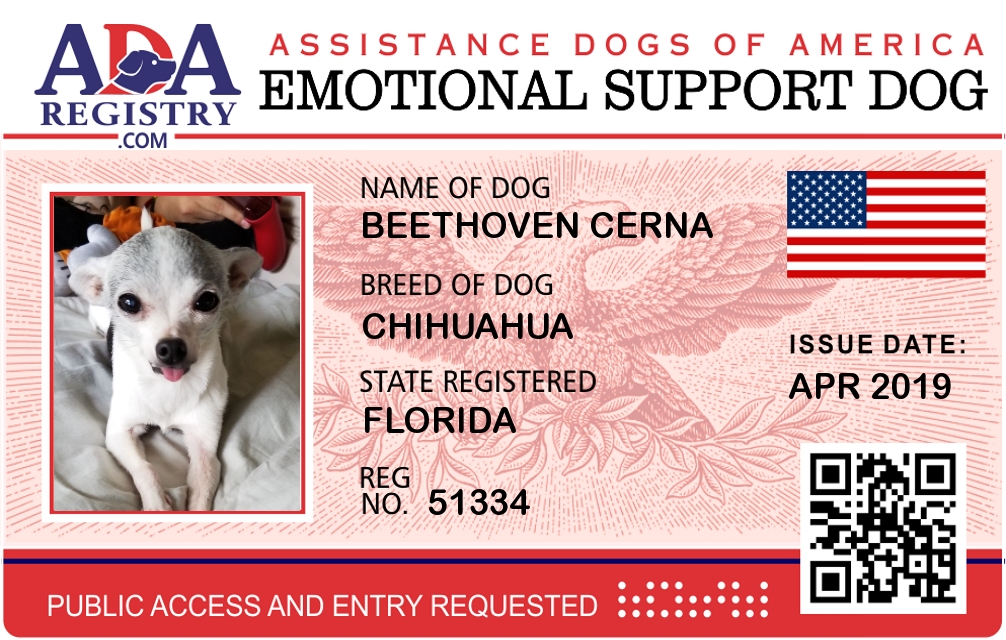 Emotional Support Dog Registration for Beethoven Cerna