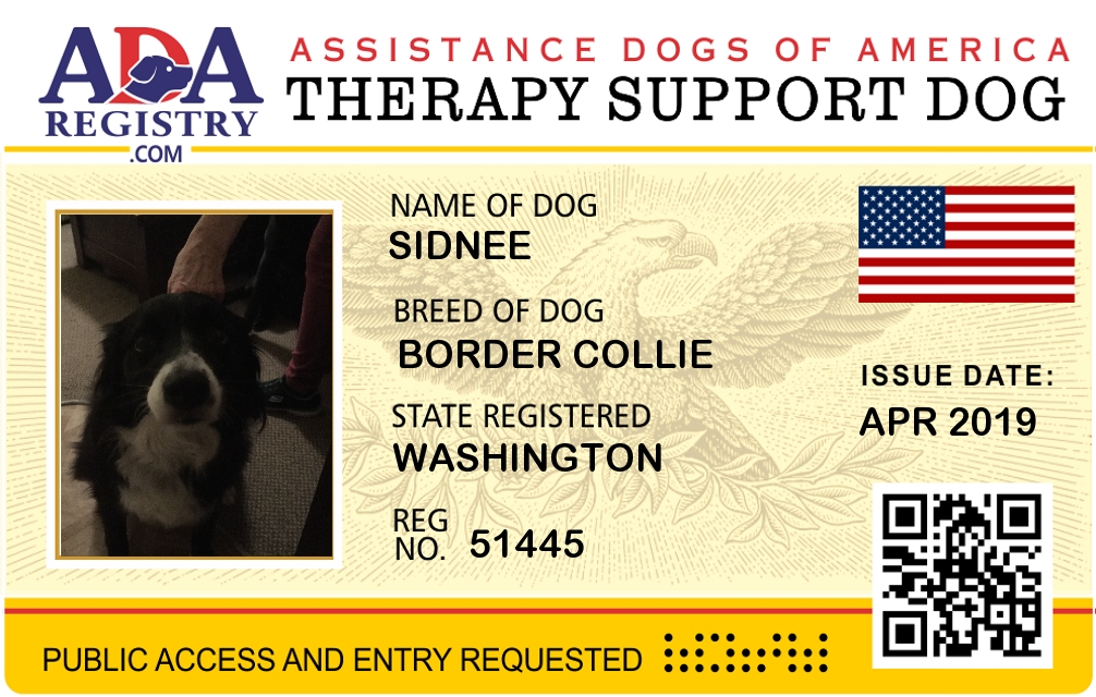 Therapy Dog Registration for Sidnee