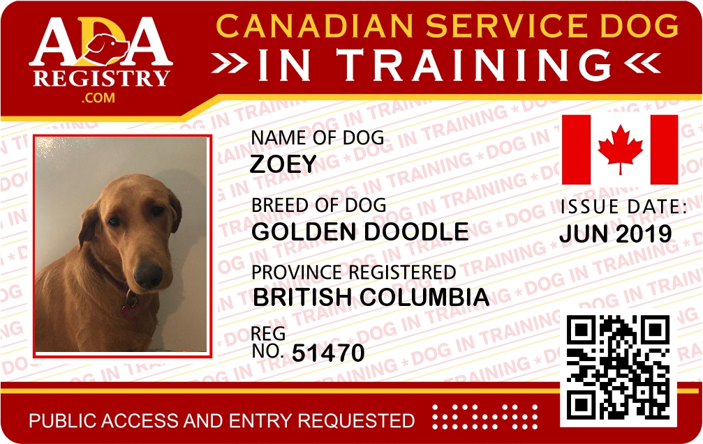 Service Dog In Training Registration for Zoey