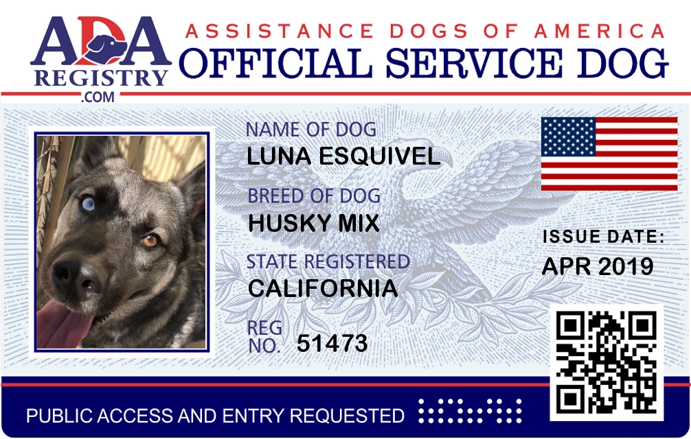 Service Dog Registration for Luna Esquivel