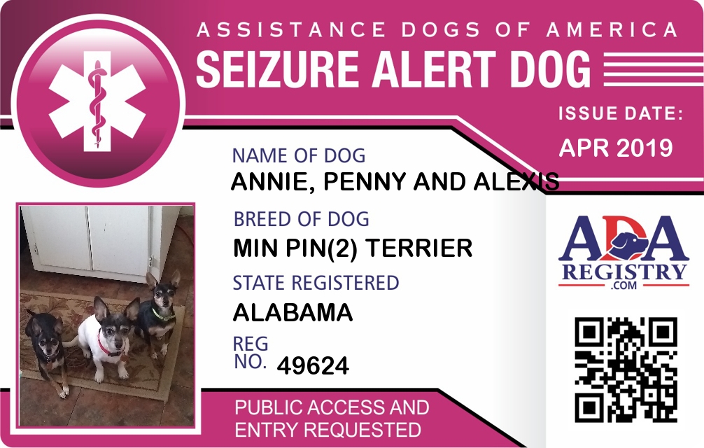Seizure Assistance Dog Registration for Annie, Penny and Alexis