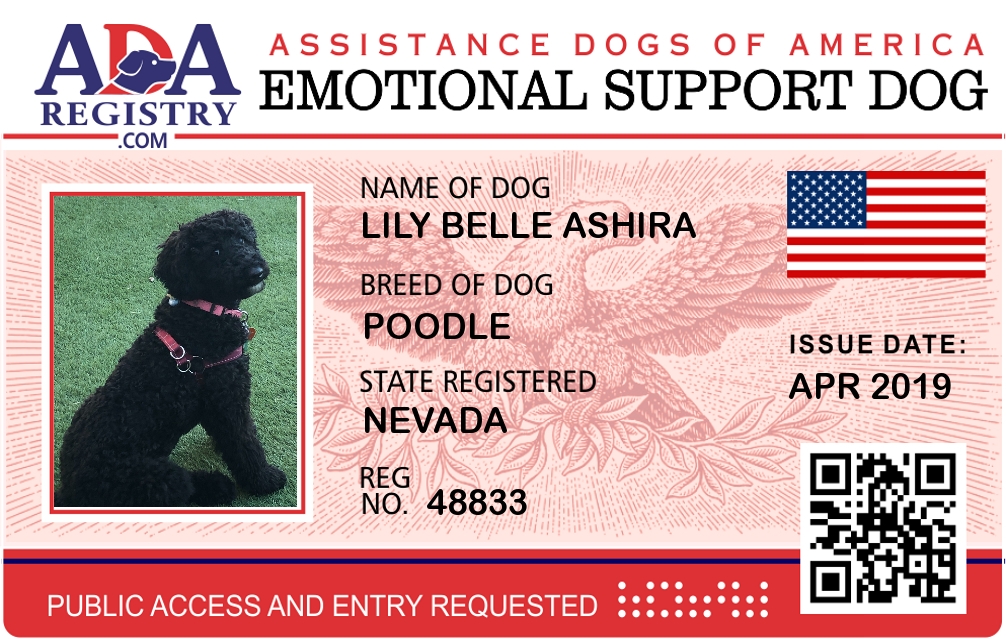 Emotional Support Dog Registration for Lily Belle Ashira