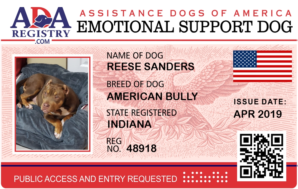 Emotional Support Dog Registration for Reese Sanders