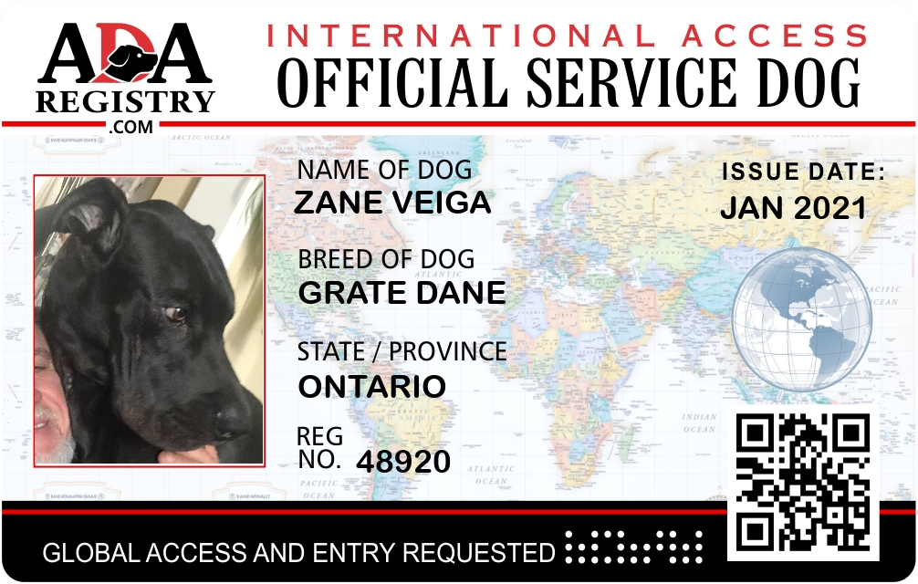 International Service Dog Registration for Zane Veiga