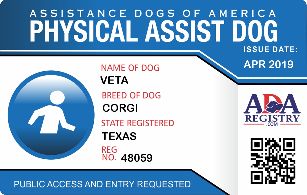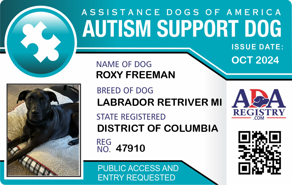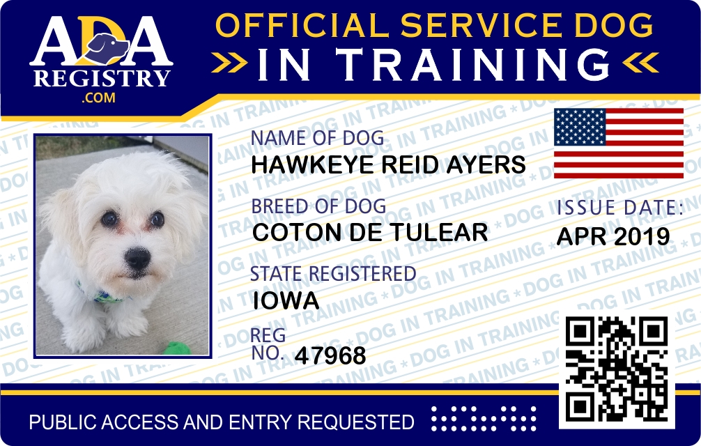 Service Dog In Training Registration for Hawkeye Reid Ayers