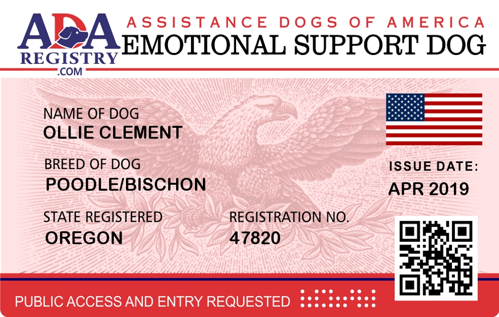 Emotional Support Dog Registration for Ollie Clement