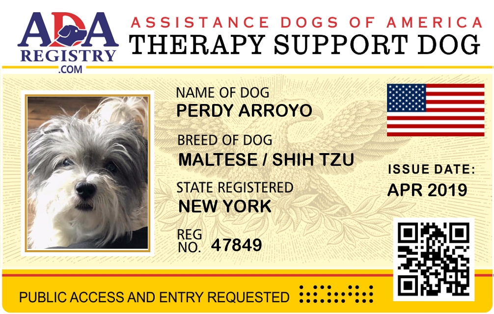 Therapy Dog Registration for Perdy Arroyo