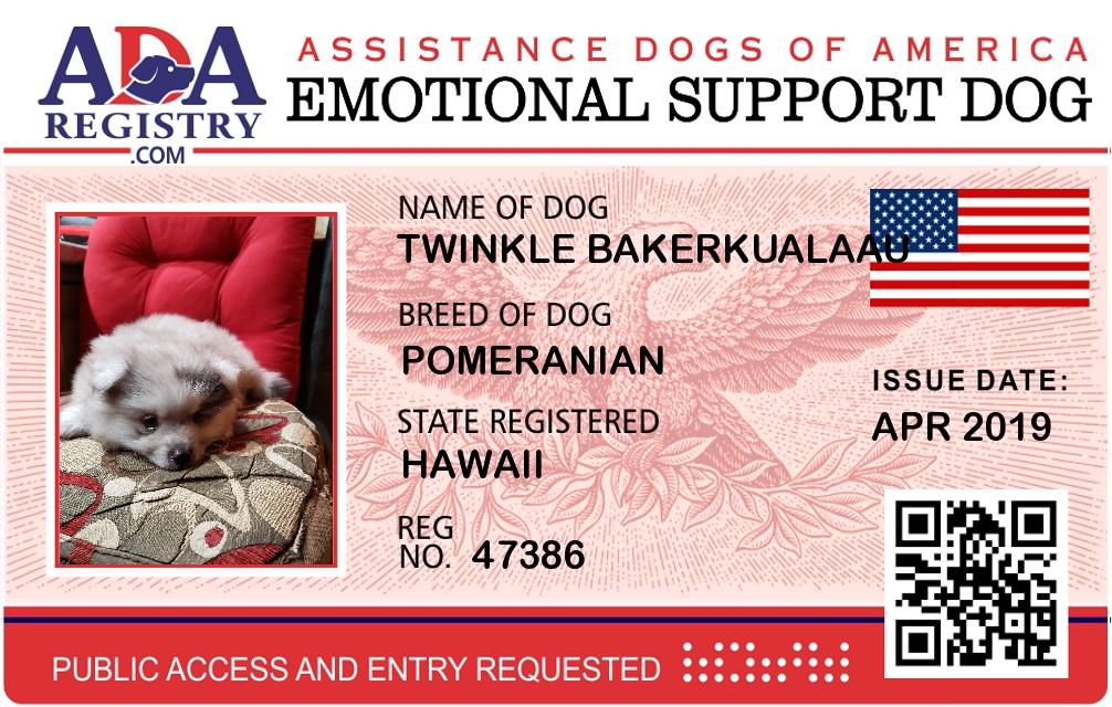 Emotional Support Dog Registration for Twinkle BakerKualaau